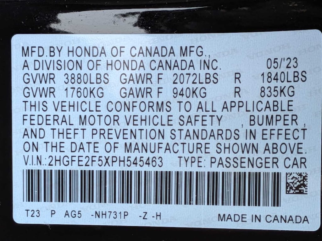 2023 Honda Civic Sport FWD 30/37 City/Highway MPG