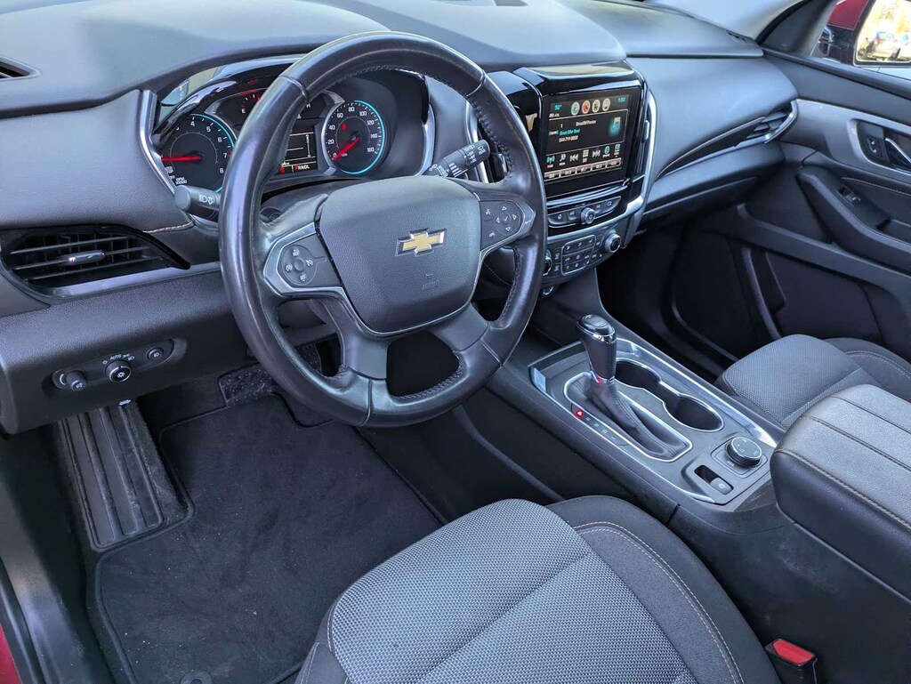 LPO, HIT THE ROAD PACKAGE includes (VLL) Black or (VQP) Bright roof rack cross rails, LPO and (VXW) molded assist steps, LPO (Includes (VLL) Black roof rack cross rails, LPO. LT CLOTH PREFERRED EQUIPMENT GROUP Includes Standard Equipment, AUDIO SYSTEM, CHEVROLET INFOTAINMENT SYSTEM with 8 diagonal color touch-screen and AM/FM stereo, includes Bluetooth® streaming audio for music and most phones; featuring Android Auto® and Apple CarPlay® capability for compatible phones (STD), ENGINE, 3.6L V6, SIDI, VVT (310 hp [232.0 kW] @ 6800 rpm, 266 lb-ft of torque [361 N-m] @ 2800 rpm) (STD), TRANSMISSION, 9-SPEED AUTOMATIC (STD). Chevrolet LT Cloth with Cajun Red Tintcoat exterior and Jet Black interior features a V6 Cylinder Engine with 310 HP at 6800 RPM*.