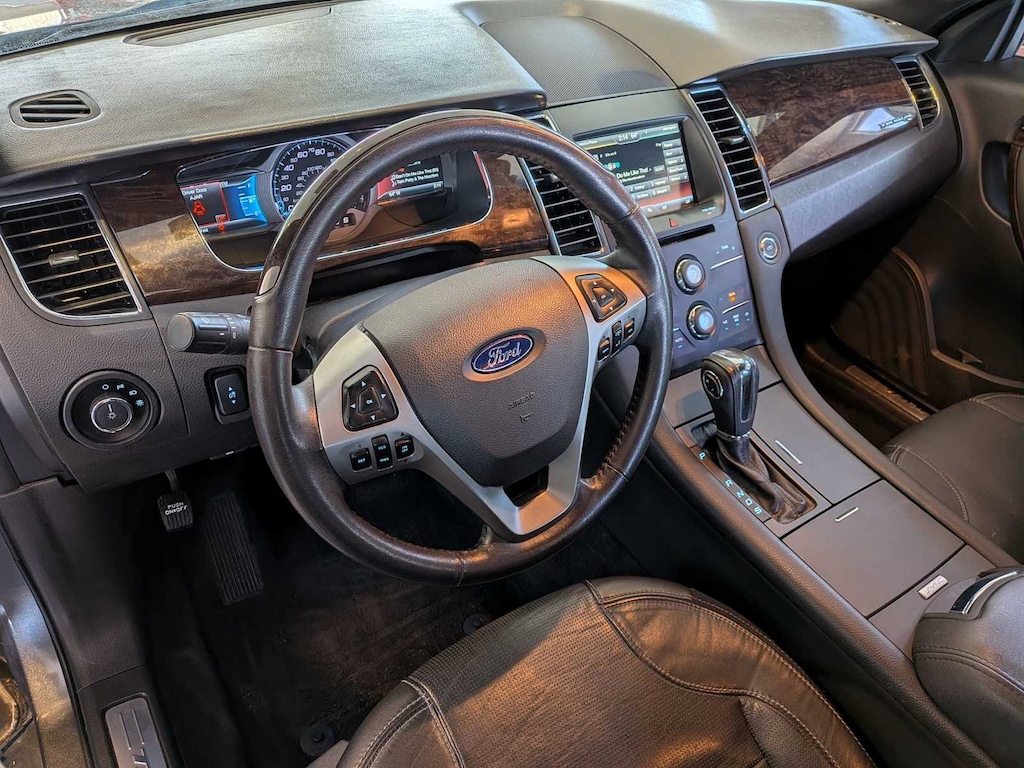 * The 2015 Ford Taurus is classic American big-car motoring, with tons of cargo space, and the kind of driving feel that soaks up hundreds of miles a day without breaking a sweat. The Taurus SHO does so quickly, while the 4-cylinder model saves fuel along the way. Source: KBB.com