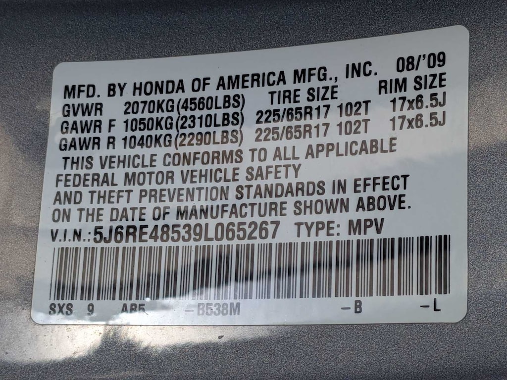 2009 Honda CR-V EX AWD 20/26 City/Highway MPG