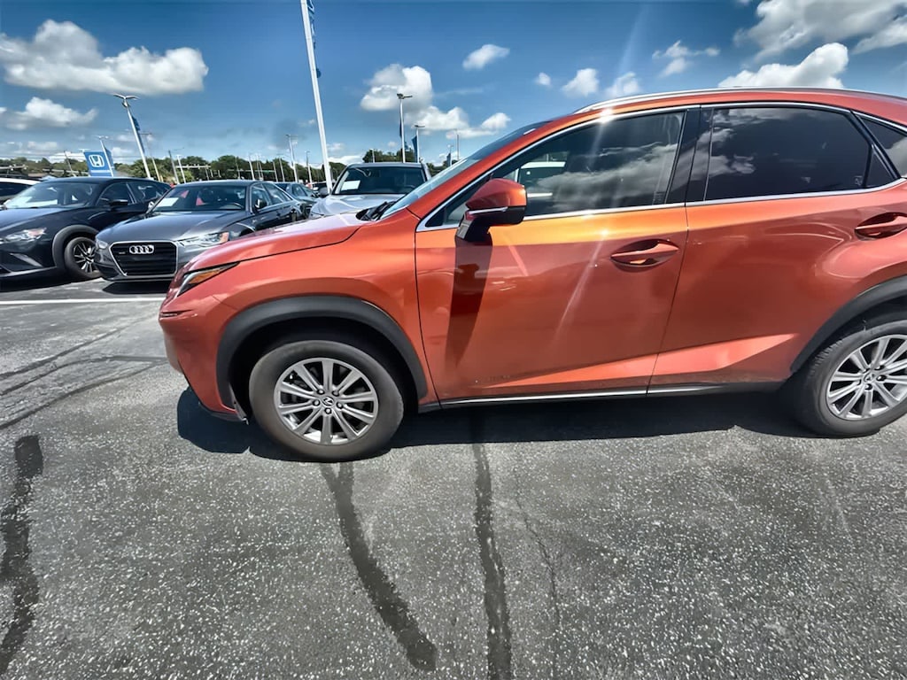 POWER TILT & SLIDE MOONROOF/SUNROOF, HEATED & VENTILATED FRONT SEATS, POWER BACK DOOR W/KICK SENSOR auto and easy closer door, wireless lock, unlock and panic alarm, PARKING ASSIST W/INTELLIGENT CLEARANCE SONAR back sonar, ACCESSORY PACKAGE Key Gloves (PPO), Alloy Wheel Locks (PPO), Carpet Cargo Mat (PPO), Cargo Net (PPO), HEATED LEATHER STEERING WHEEL W/PADDLE. Lexus NX 300 with Cadmium Orange exterior and BLACK interior features a 4 Cylinder Engine with 235 HP at 4800 RPM*.